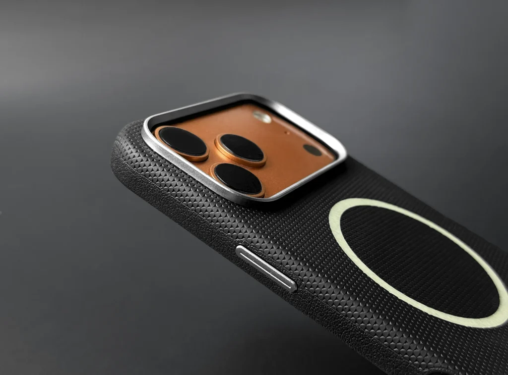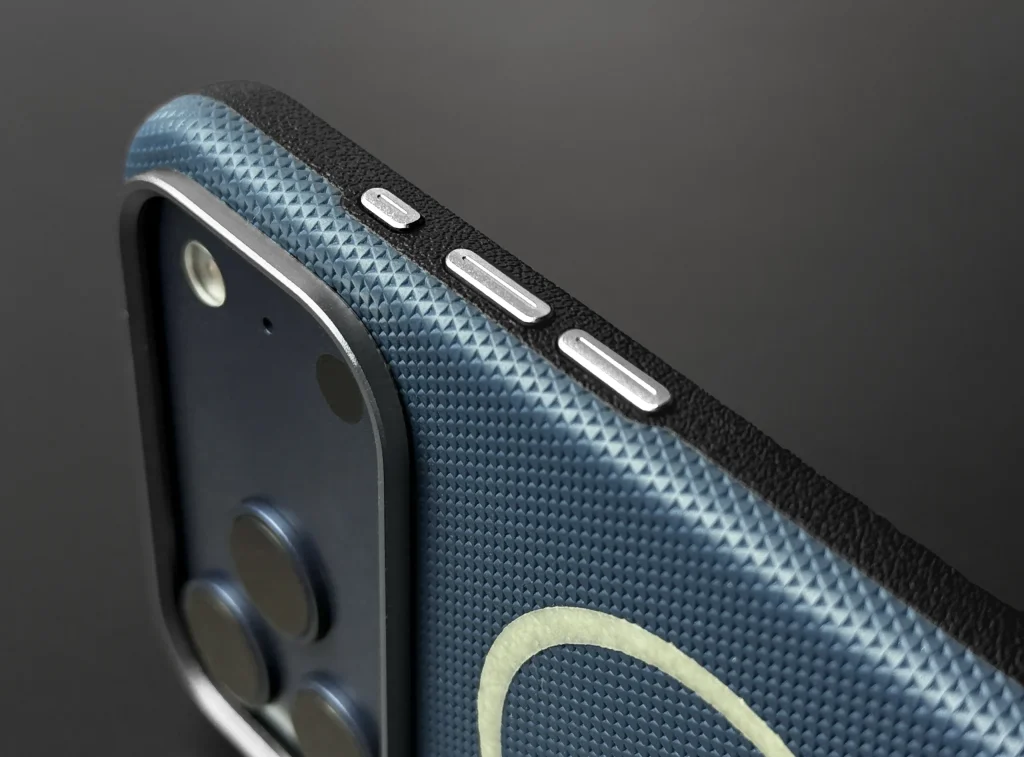 Кнопки выполнены из того же алюминиевого сплава, что и рамка камеры. Они дают четкий, тактильно приятный клик без люфта — ощущение, как будто нажимаешь кнопки самого устройства, а не чехла.